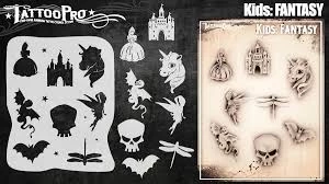 This Special Edition Kids Stencil Kit contains Various kid-sized stencil designs including, Princess, Castle, Unicorn, Dragon, Fairy, Skull, Dragonfly & Bat!